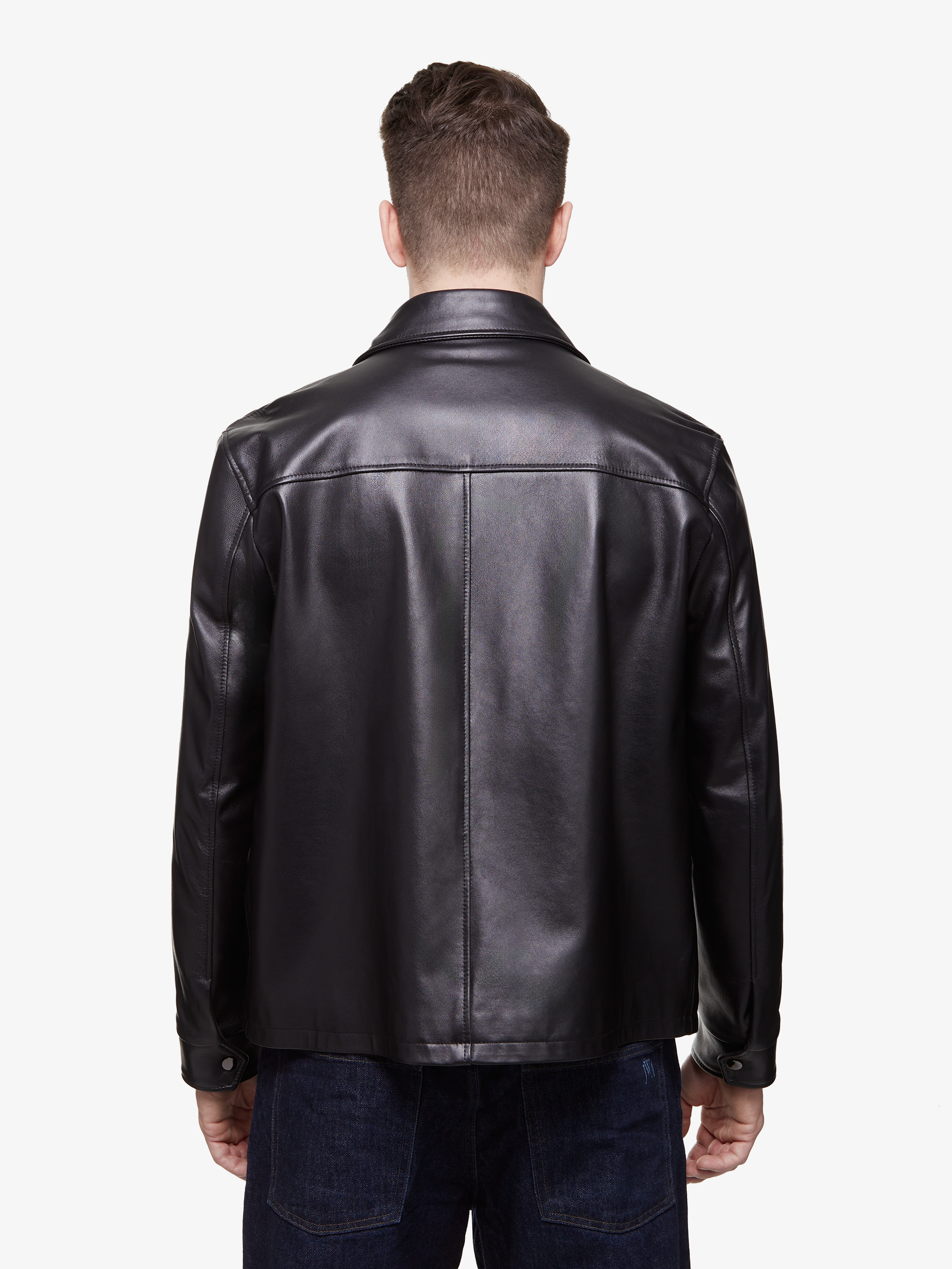 Discover the STERLING Overshirt, crafted from luxurious Italian lambskin leather offering remarkable suppleness and a refined texture. This elegant piece features gunmetal snap buttons that enhance its modern appeal. Lined with rich black silk, it ensures a fluid drape and optimal comfort.