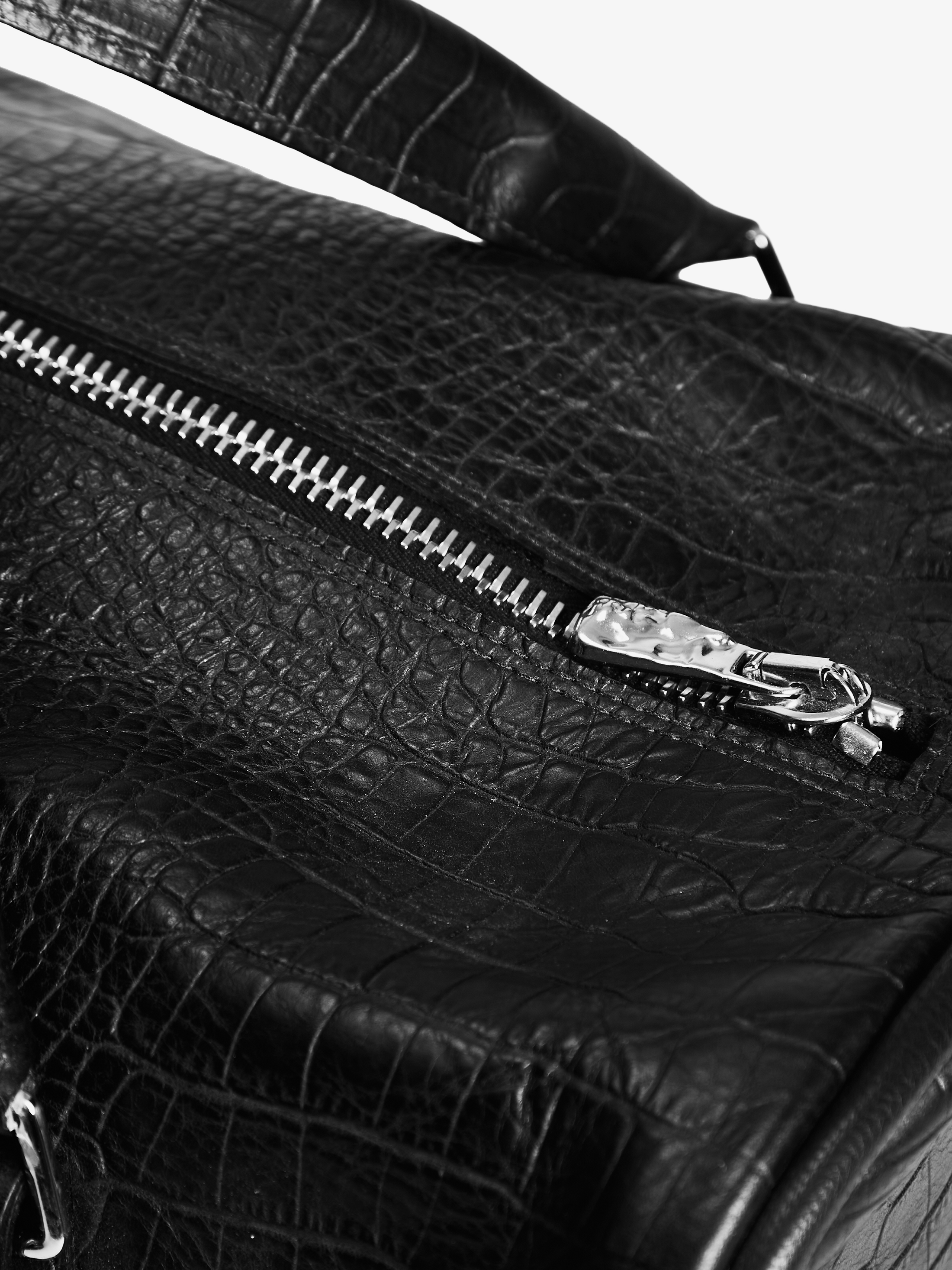 Duffle bag || black crocodile-embossed leather