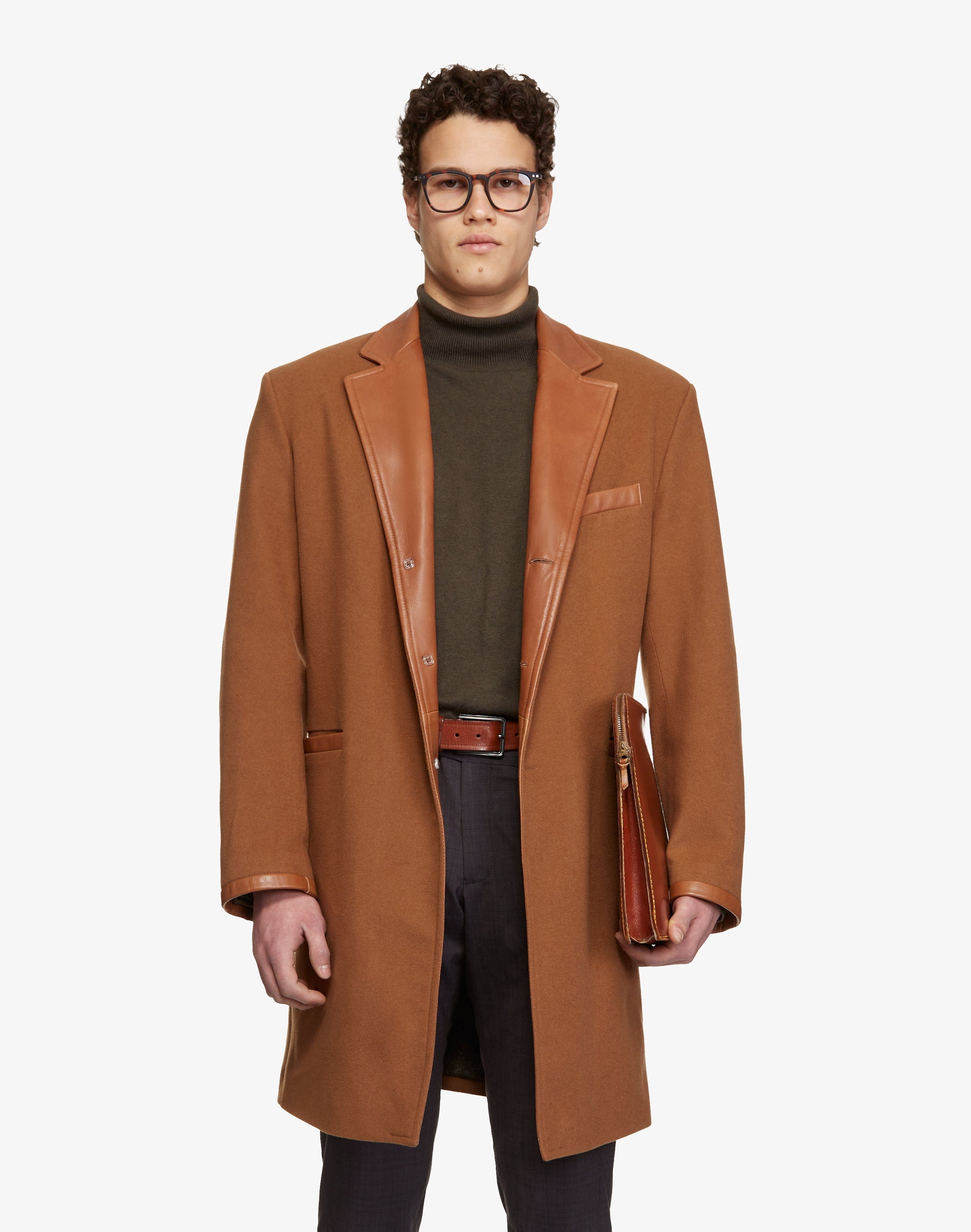 Discover the VAULT coat, crafted from 100% Italian cashmere for unparalleled softness and warmth. It features a discreet lambskin leather lapel collar, leather tabs at the cuffs, and meticulous finishing. This blend of brown lambskin and cashmere creates a refined contrast for a contemporary and timeless look. With its brown exterior and sumptuous black silk lining, this coat perfectly combines style and comfort.
